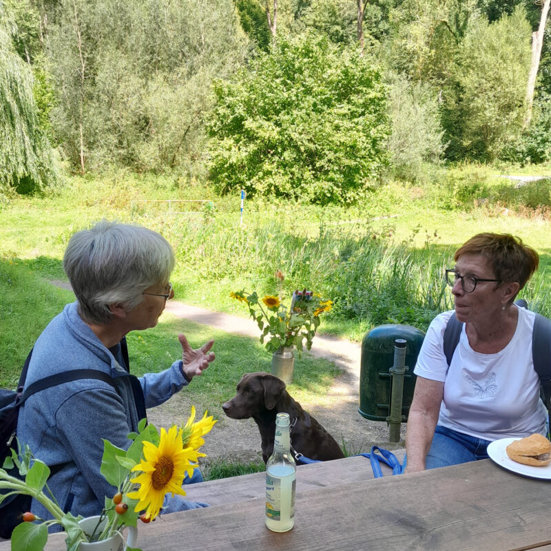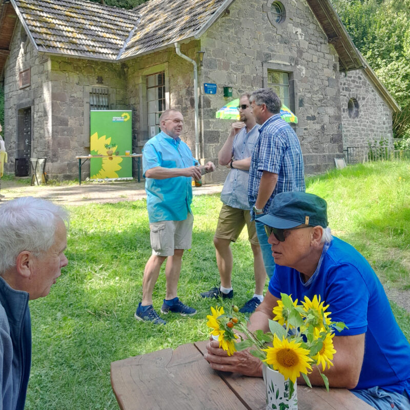 Bei einem Imbiss vom Grill, Getränken und Kuchen begegneten sich zahlreiche Besucher zu Gesprächen und ehrlichem Meinungsaustausch. Sonnenblumen und grüne Luftballons wiesen den Weg zum Geschehen.